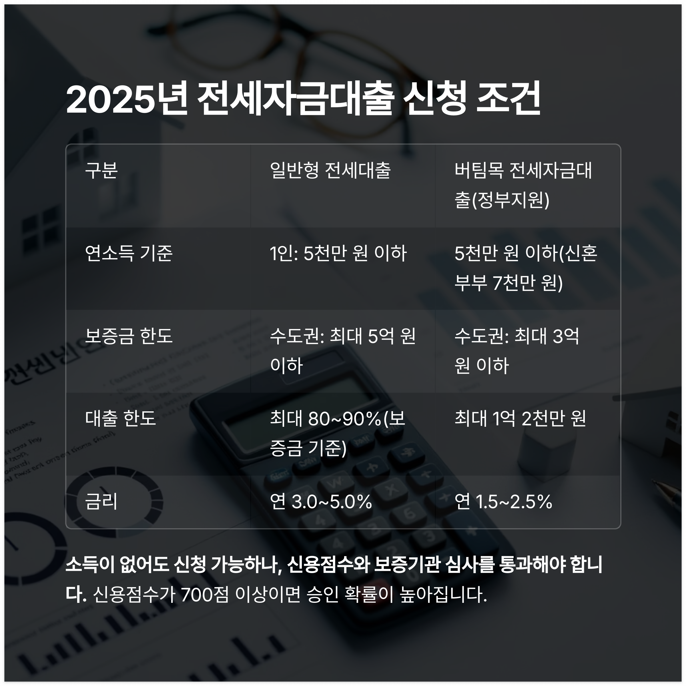 2. 전세자금대출 신청 조건 (2025년 기준)