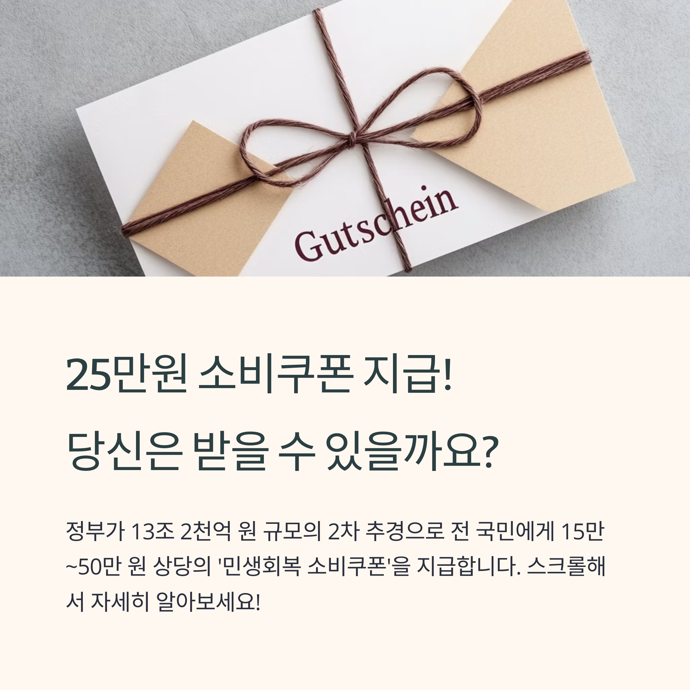 정부 2차 추경으로 25만원 소비쿠폰 나온다! 나는 받을 수 있을까?