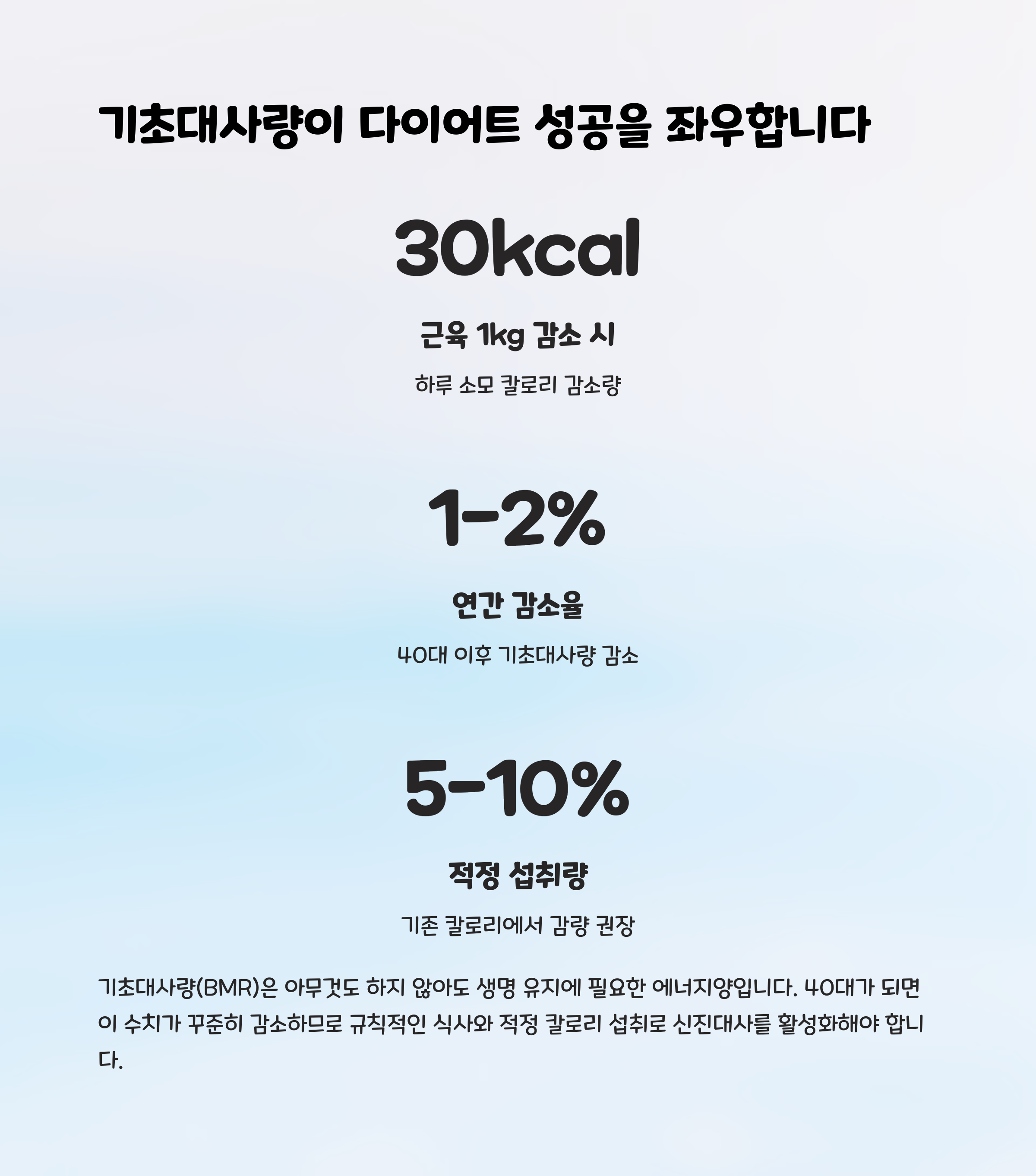 기초 대사량을 유지하거나 높이는 것이 체중 감량의 핵심입니다.