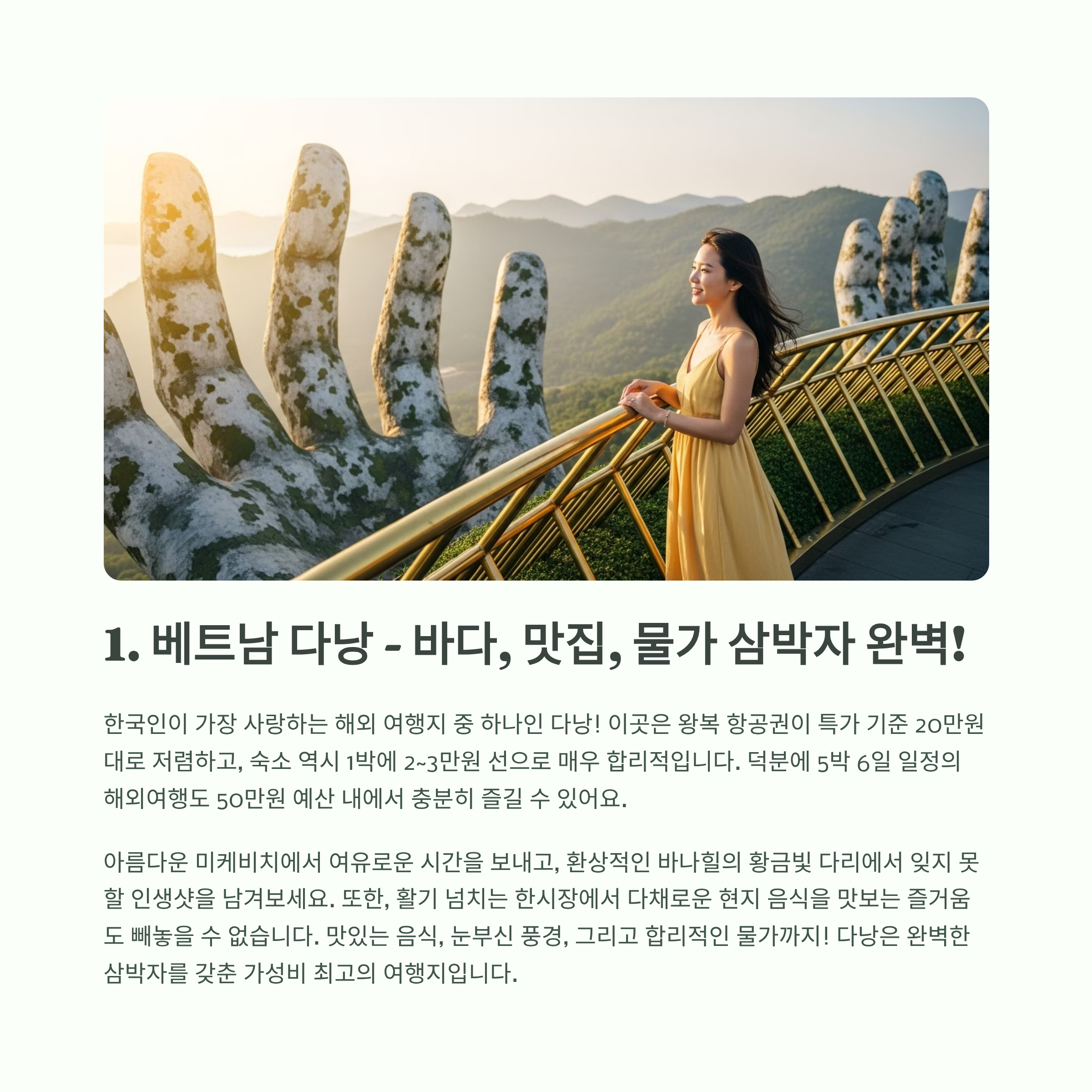 1. 베트남 다낭 – 바다, 맛집, 물가 모든 게 완벽
