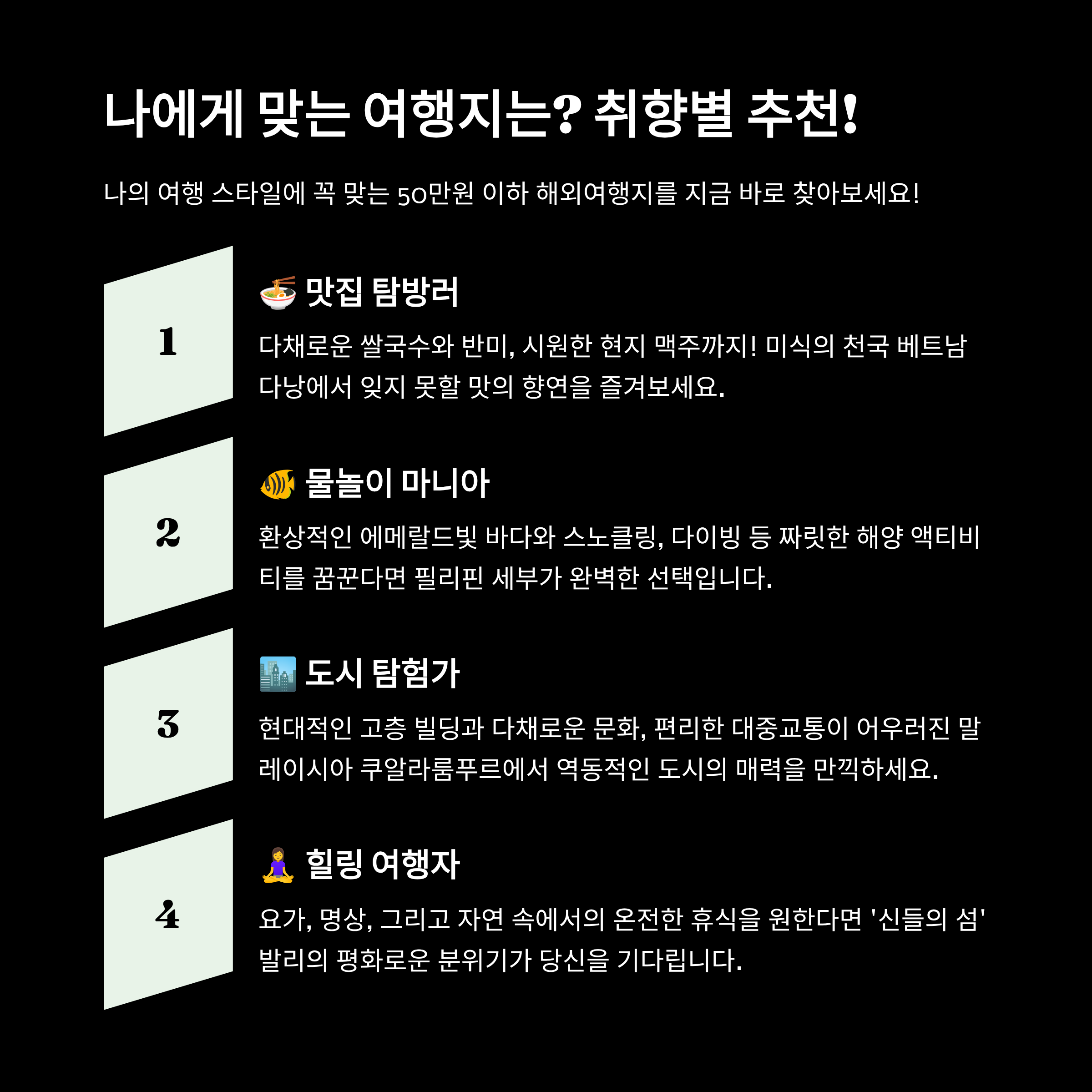 “비행기값 + 숙소 다 합쳐서 50만 원으로 가능한 해외여행지”는 어디일까?