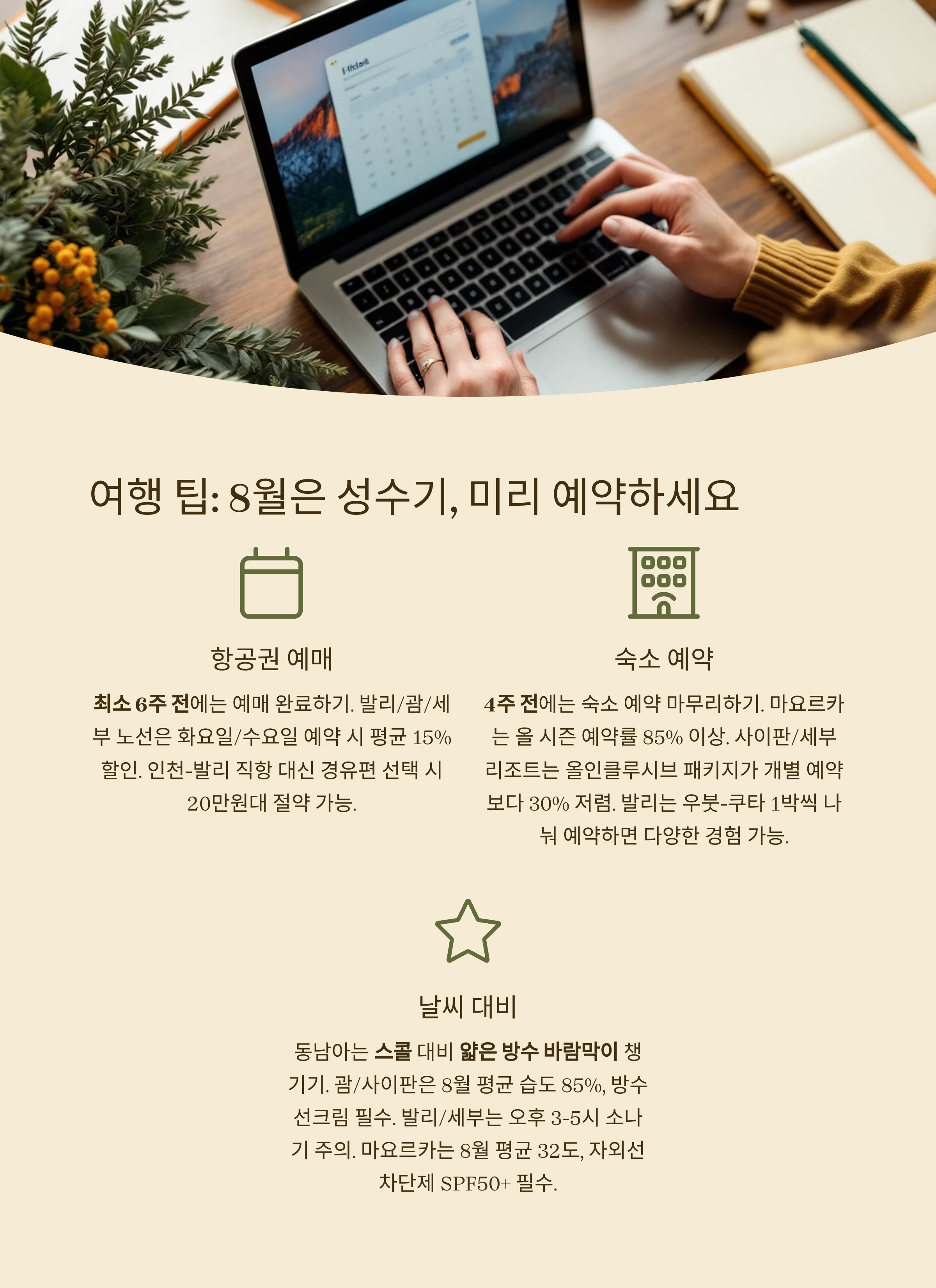 여행 팁: 8월은 성수기, 미리 예약은 필수예요