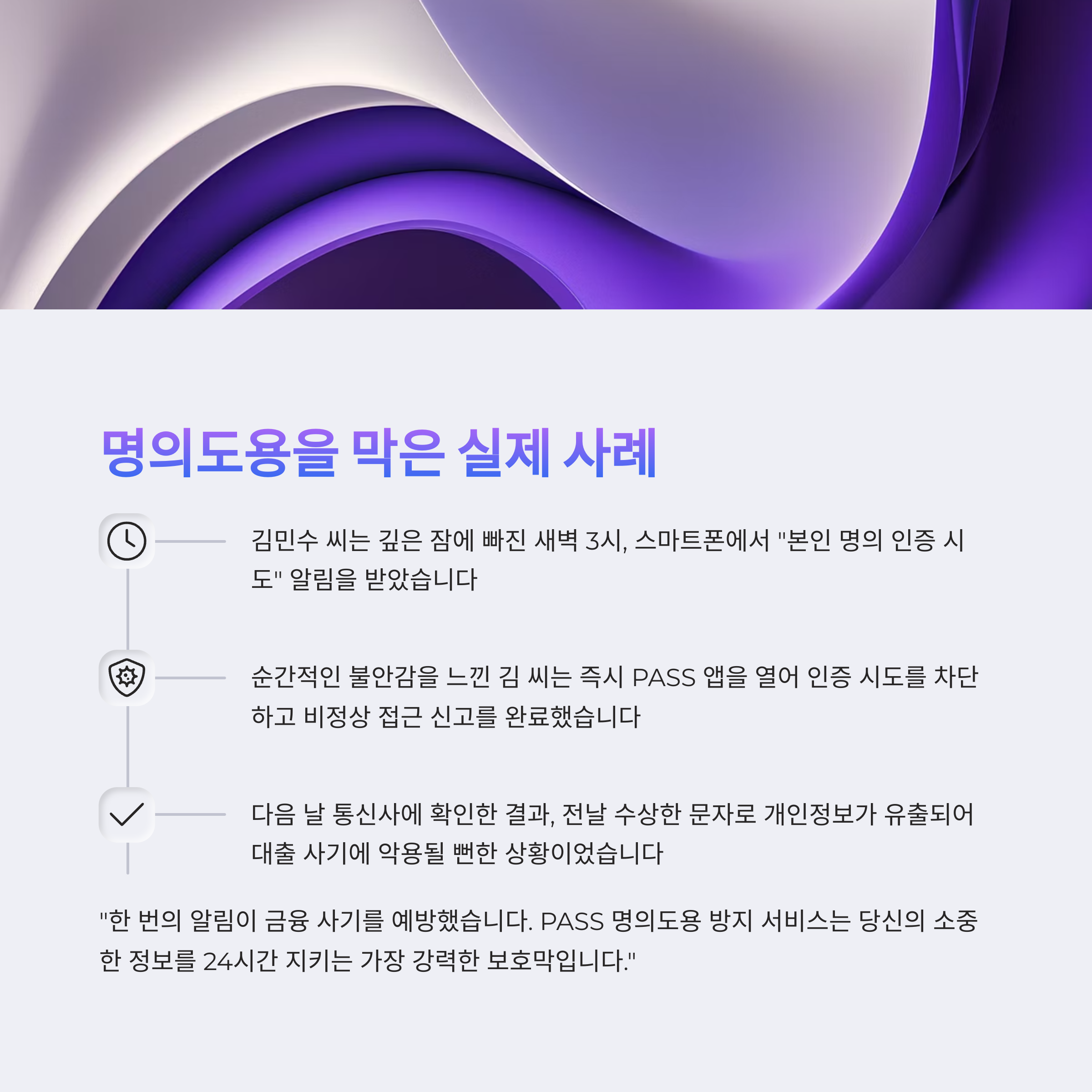 PASS 명의도용 방지 서비스는 마지막 보안선입니다.