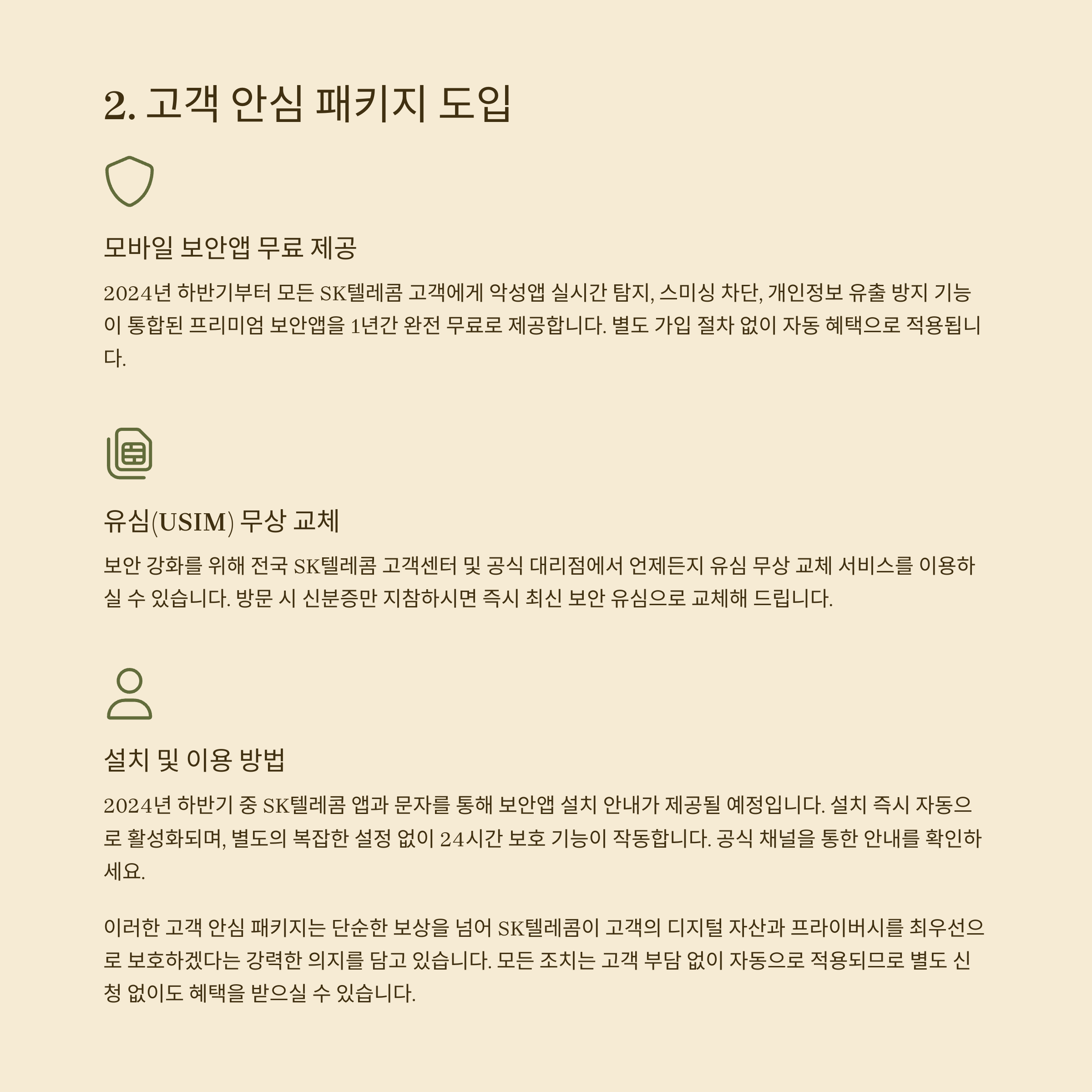 2. 고객 안심 패키지 도입: 유심 무상 교체, 모바일 보안앱 1년 무료 제공