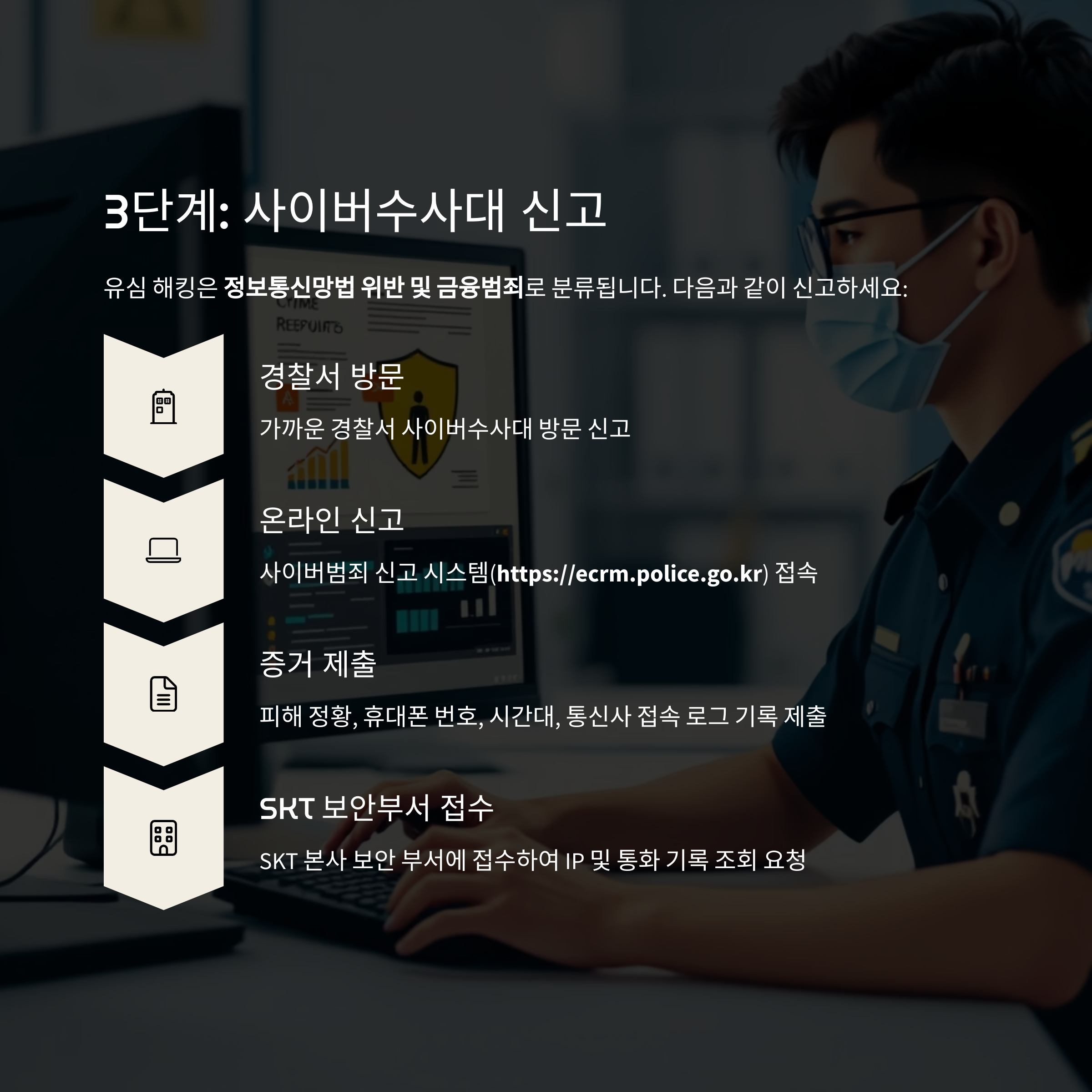또한 피해가 확인된 경우 SKT 본사 보안 부서에 접수해 조사 협조 요청도 가능하며