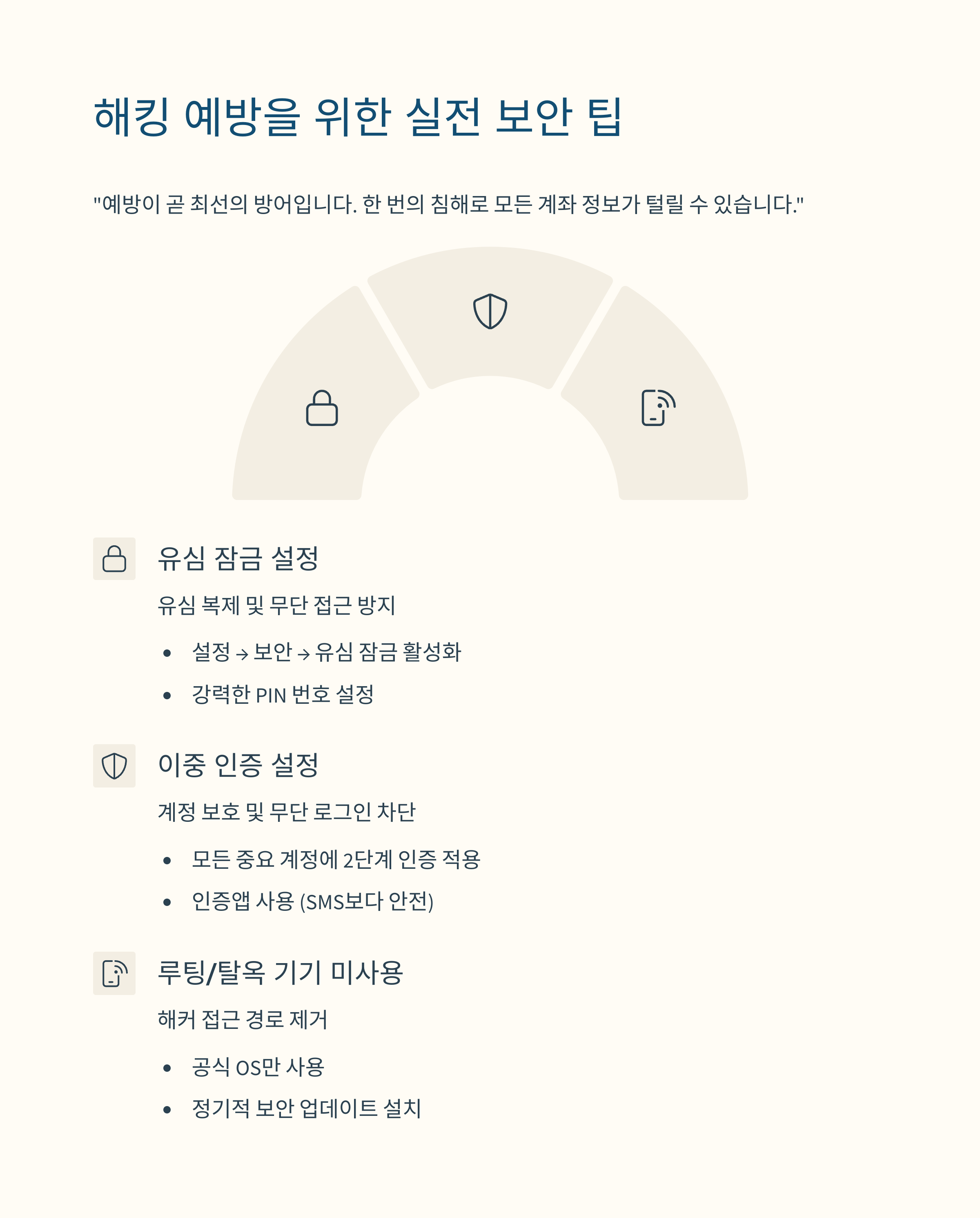 | 루팅/탈옥 기기 미사용 | 해커 접근 경로 제거 |