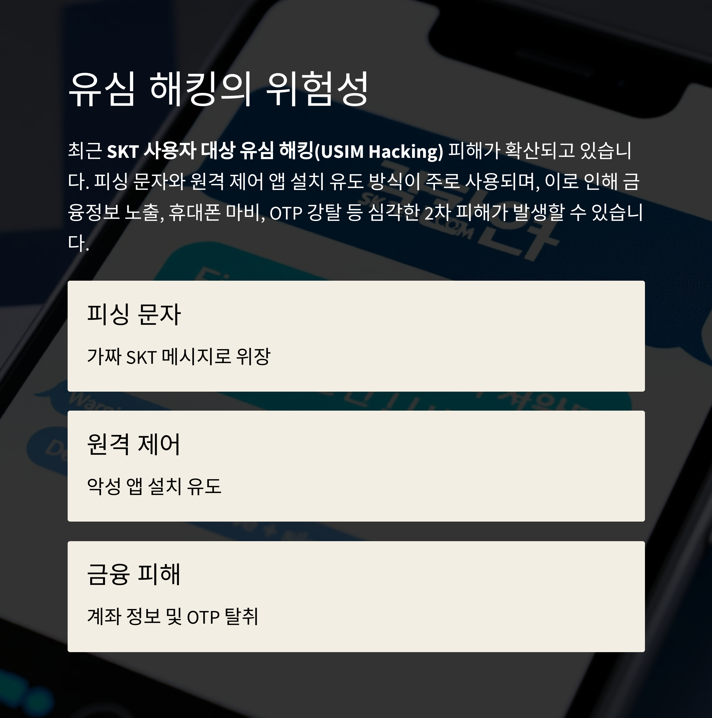 유심 해킹(USIM Hacking) 피해가 확산되고 있습니다.